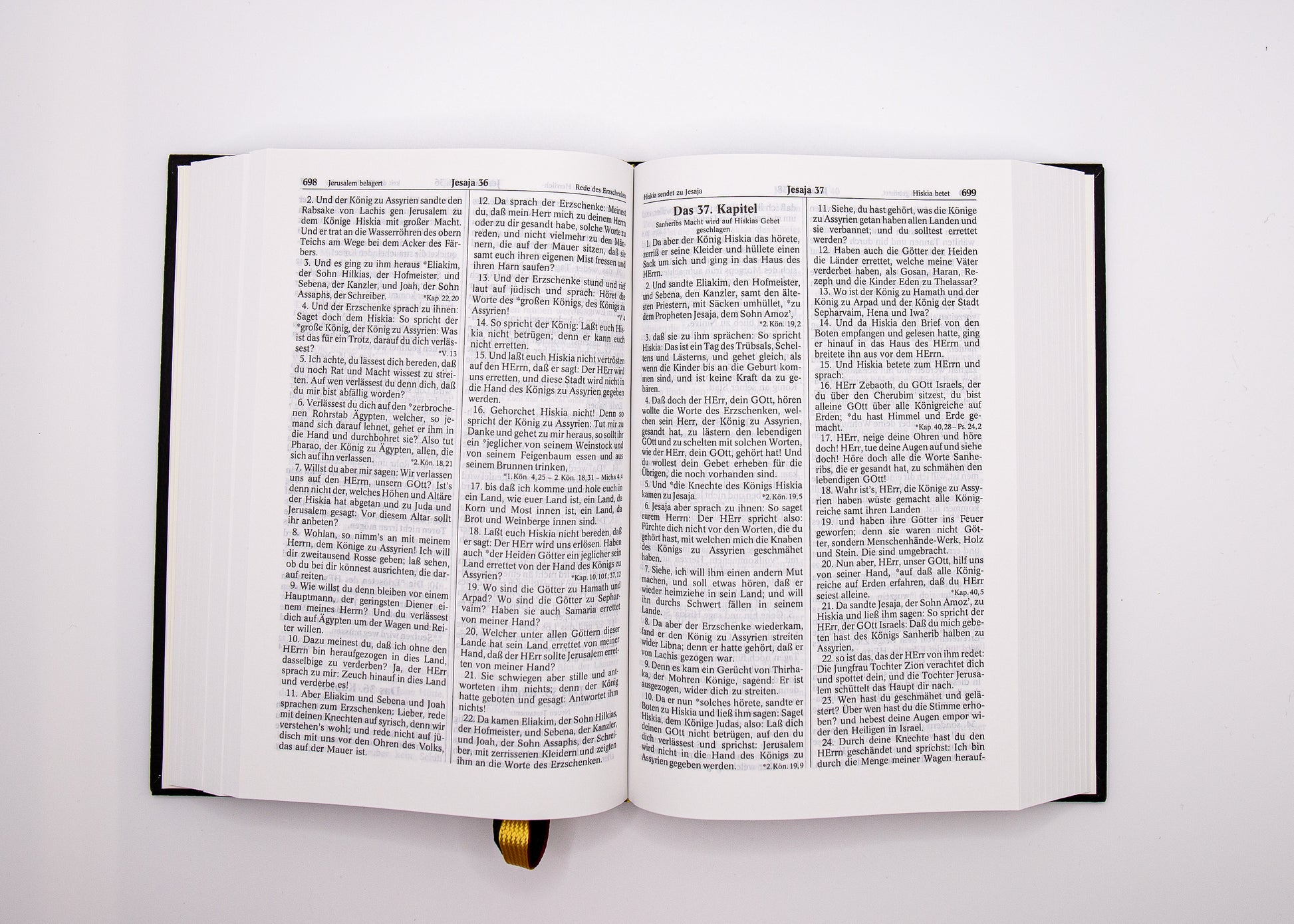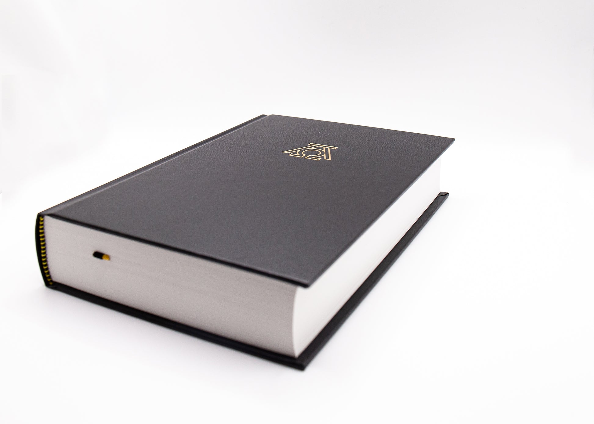 schwarzer Einband, Fadenheftung, zwei Lesebändchen