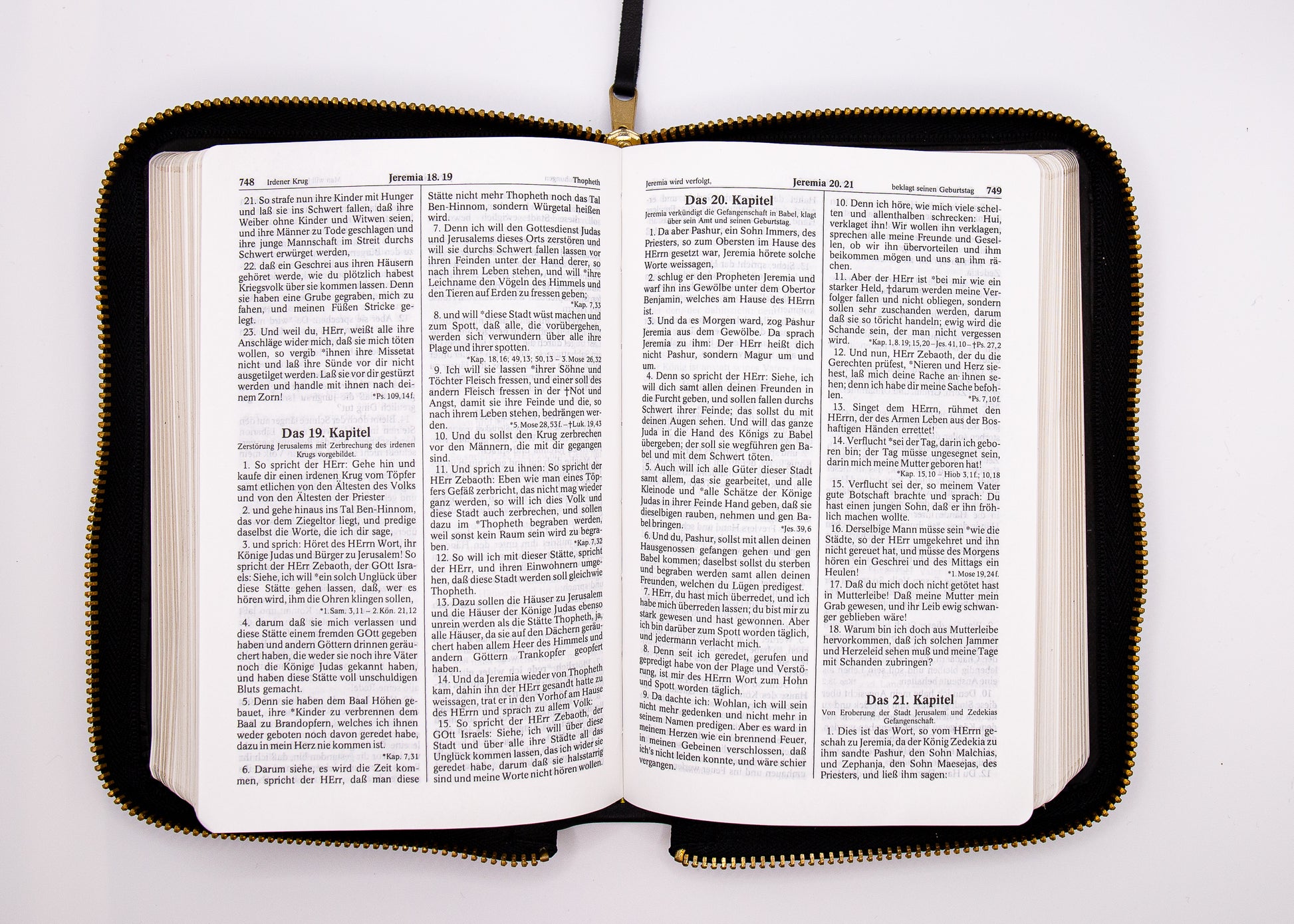 Taschenbibel Softcover Lederausgabe mit echtem Rindsleder, Goldschnitt & Metall-Reißverschluss, ca. 10,7 x 16,2 cm